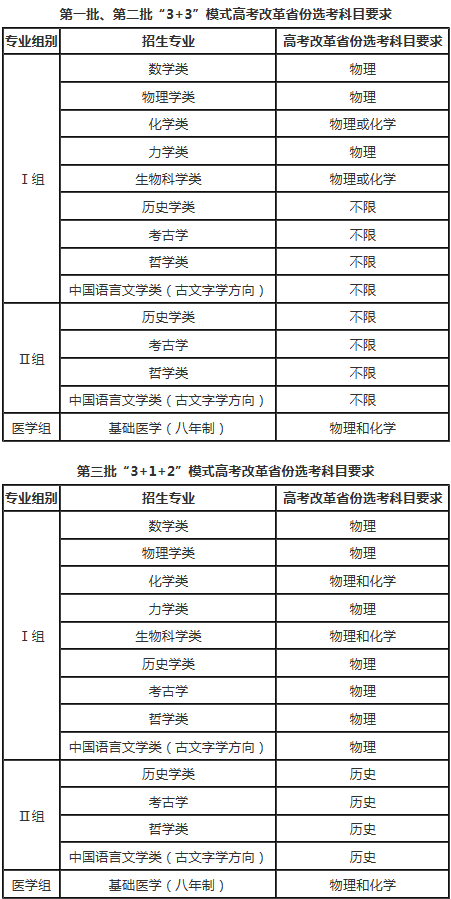 3.考生仅可选择一个专业组进行报考,各专业组单列计划,单独排队入围及录取。医学组在北京大学医学部招生代码下录取。